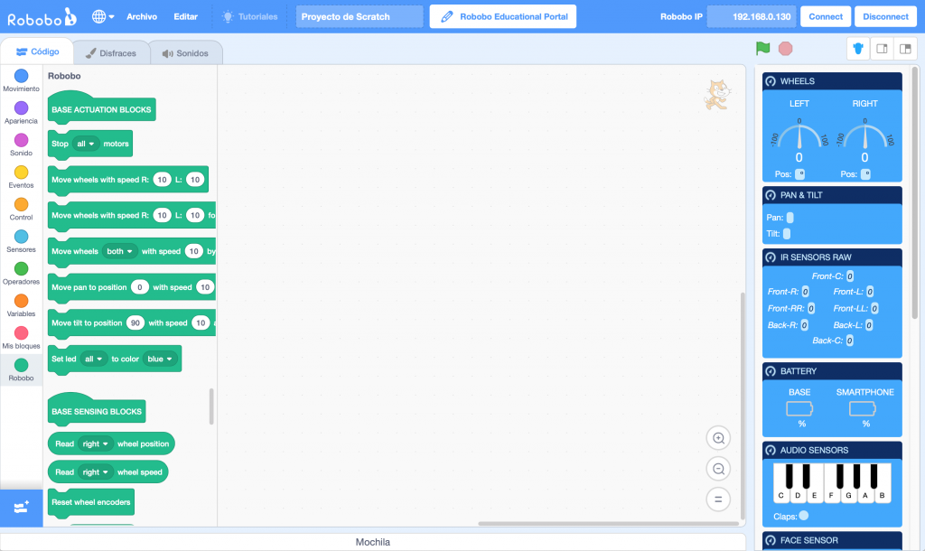 En este material de ayuda se documenta la extensión de programación de Robobo en Scratch. Se considera que el usuario tiene conocimientos previos de Scratch, por lo que no se explicarán conceptos que se consideran básicos de programación, como variables, condicionales, bucles o funciones.