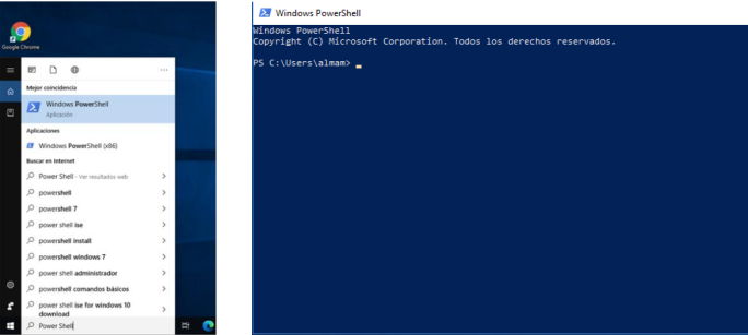 - A continuación, se abrirá una ventana con la terminal “Windows PowerShell”.