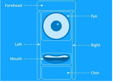 - zone (string): Devuelve el área de la pantalla del smartphone, que puede ser uno de los siguientes valores: ‘forehead’, ‘eye’, ‘right’, ‘left’, ‘mouth’ o ‘chin’. Estos valores están representados en la imagen siguiente: