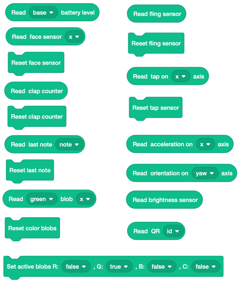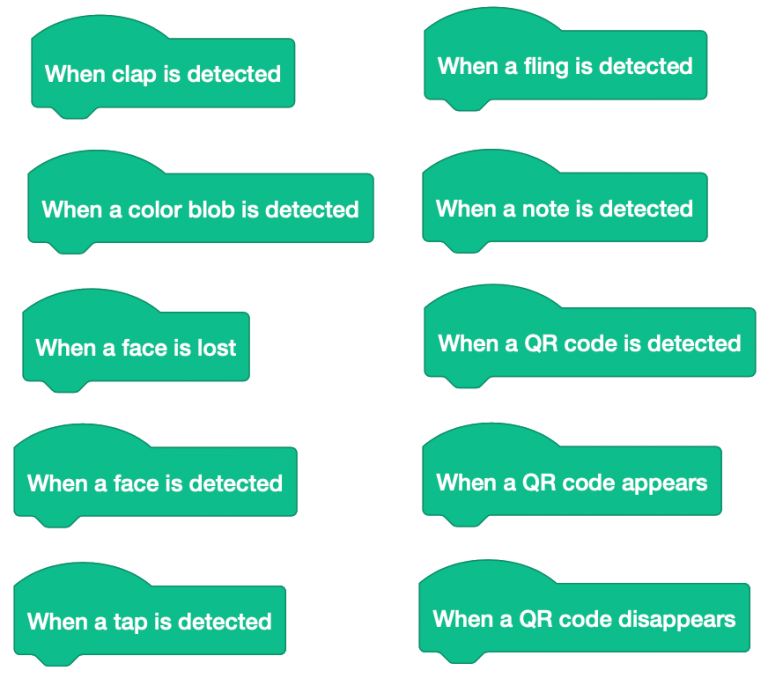 - Hat blocks (bloques de sensorización que están leyendo el sensor permanentemente):